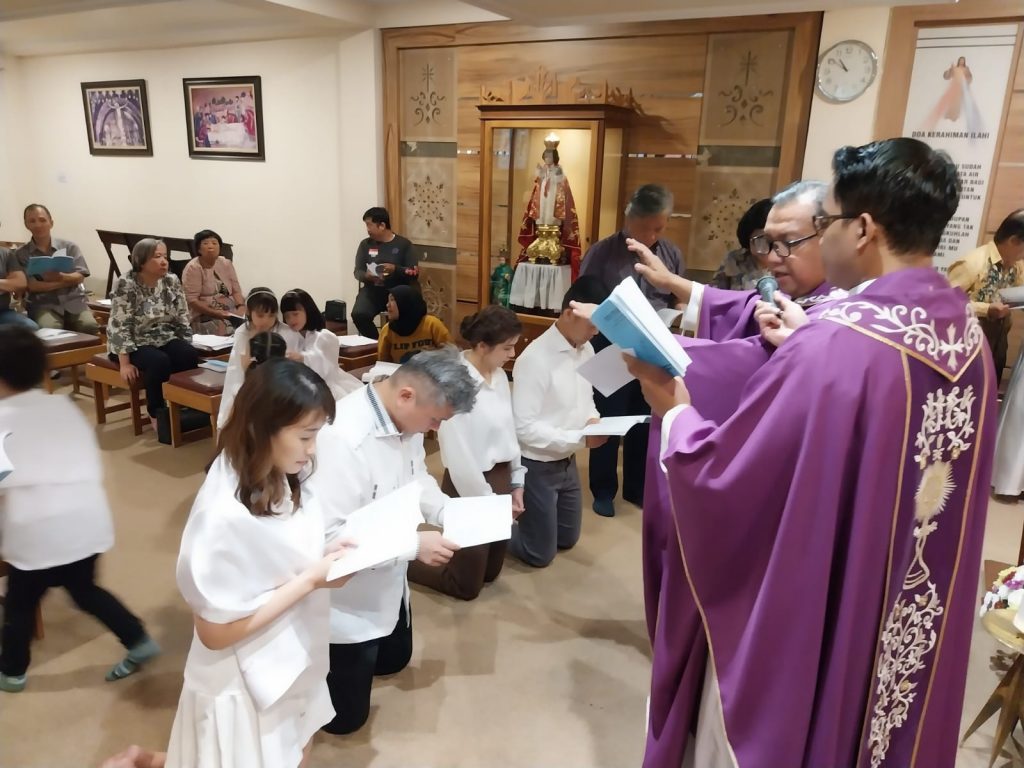 Hari Sabtu 8 Maret 2025 merupakan momen yang istimewa bagi Keluarga Erich Yacob dan Keluarga Suhandy (umat Lingkungan Santo Stefanus) yang menerima baptisan dan pembaharuan perkawinan dalam Perayaan Ekaristi di Kapel Santa Faustina Paroki Santo Yoseph Palembang pukul 10.00 Wib yang dipimpin oleh RD. Hyginus Gono Pratowo, didampingi oleh RD. Yohanes Agung Apriyanto, Romo Pendamping Wilayah Tujuh.
