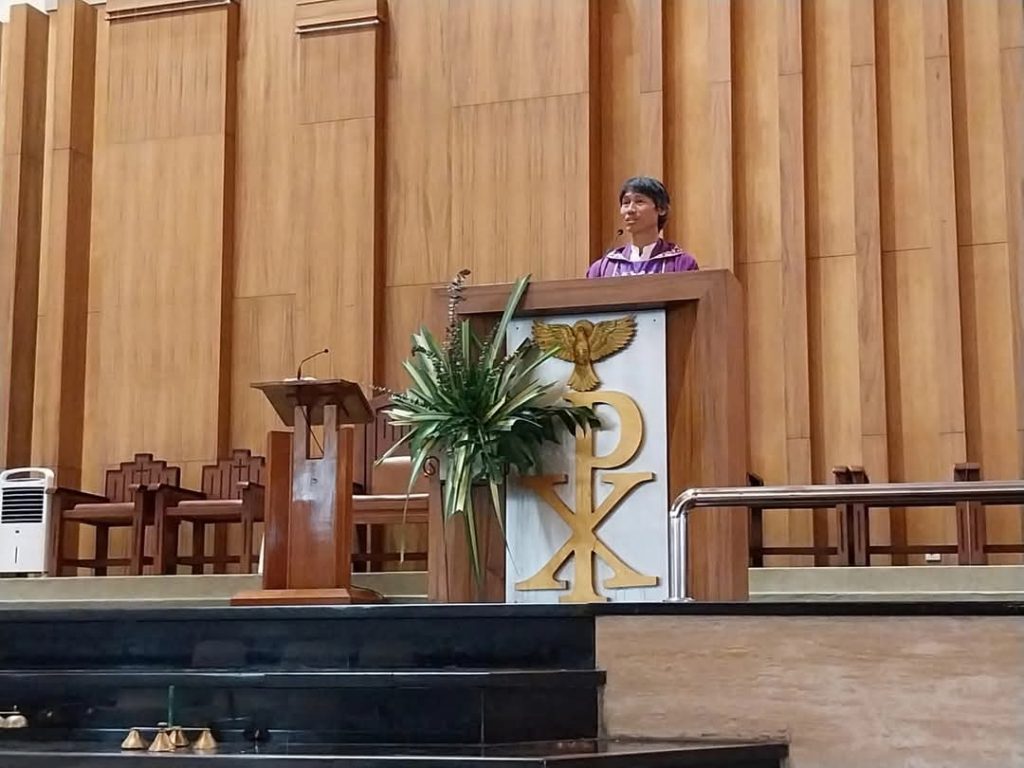 Dalam homilinya Romo Surawan mengajak umat untuk merenungkan firman Tuhan kisah dimana Yesus dicobai iblis di padang burun. Setelah selama 40 hari lamanya Yesus berpuasa, tidak makan dan tidak minum. Cobaan yang pertama adalah Yesus diminta untuk mengubah batu menjadi roti. Cobaan yang kedua, diperlihatkan kepada Yesus seluruh kemuliaan isi dunia ini dan itu akan diberikan kepada Yesus. Syaratnya satu, kalau Yesus mau menyembah setan.