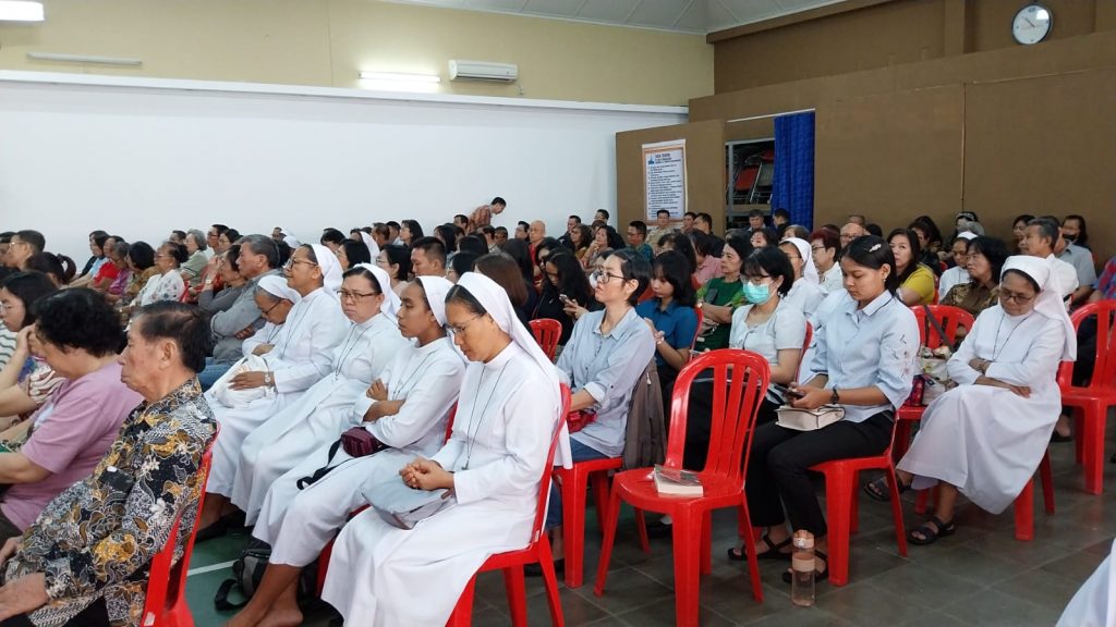 Palembang – Menyambut Pesta Pelindung Paroki Santo Yoseph Palembang 19 Maret 2026, Bidang Persekutuan DPP Santo Yoseph Palembang melalui Seksi Persekutuan Doa dan Devosi mengadakan Seminar Santo Yoseph untuk mengajak umat mengenal lebih dekat peran Santo Yoseph sebagai suami Bunda Maria. Kegiatan diikuti kurang lebih 200 peserta dari Dekanat Palembang dan luar Kota Palembang, dengan tema : Santo Yoseph, Seorang Pria Tangguh Menghadapi Krisis, Minggu 8 Maret 2026 pukul 10.00-15.00 Wib di Gedung Aula Serbaguna Santo Yoseph Palembang.