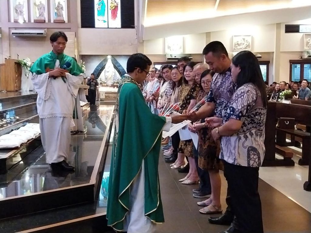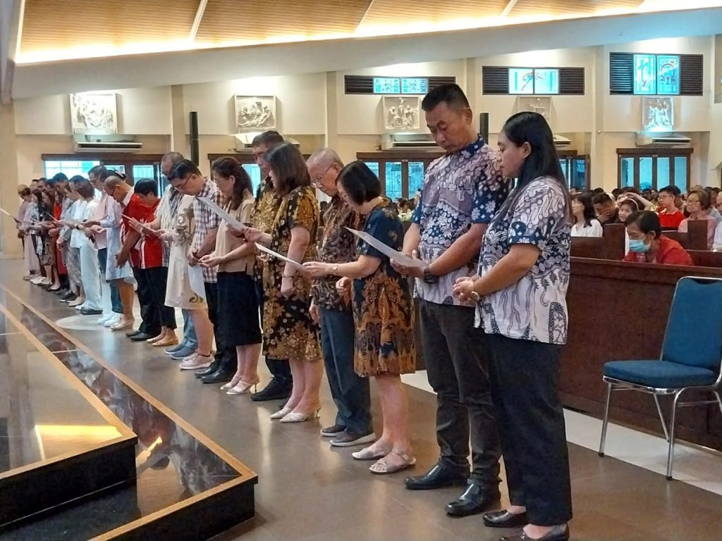 Tiga belas pasang suami istri yang merayakan ulang tahun perkawinan pada bulan September 2025 mengucapkan janji perkawinan dalam Perayaan Ekaristi, Minggu 28 September 2025 pukul 17.00 Wib yang dipimpin oleh RD. Dionisius Anton Liberto di Gereja Santo Yoseph Palembang.