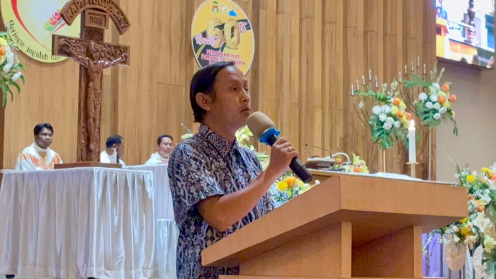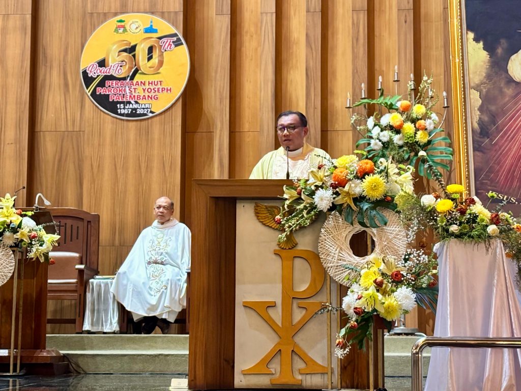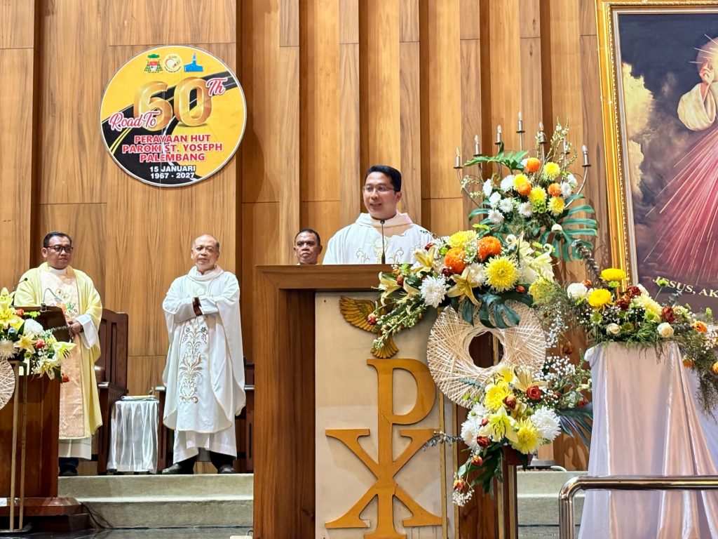 Tak lupa Pastor Paroki Santo Yoseph Palembang, RD. Hyginus Gono Pratowo mengucapkan terima kasih yang luar biasa kedatangan para Romo yang ikut konselebaran dalam Ekaristi pada sore hari ini. Terima kasih kepada Romo Yudi dan juga teman-teman OMK dari Paroki Santo Aloysius Gonzaga yang luar biasa, walaupun mungkin macet perjalanan, harus menginap dan sebagainya, tetapi semangat anda luar biasa. Semoga semangat itu terus menular untuk kami yang ada di wilayah Kota Palembang, Dekanat Palembang terdiri dari 11 Paroki, maka saya mengaturkan banyak terima kasih atas kehadiran para wakil-wakil OMK dari Dekanat Palembang ini.