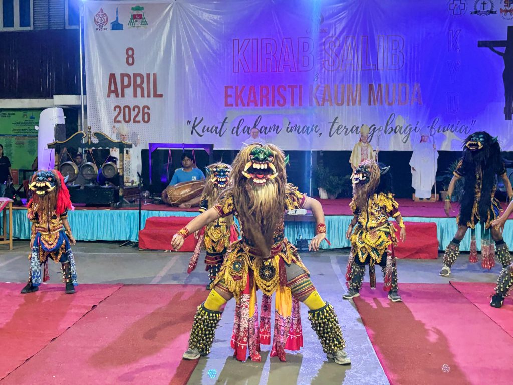 Palembang – Seusai mengikuti Perayaan Ekaristi sebanyak 200-an OMK (Orang Muda Katolik) dari empat Paroki, yaitu : Santo Stefanus Talang Betutu, Santo Petrus, Sanfrades, Santo Yoseph dan Santo Aloysius Gonzaga, Sungai Lilin berdinamika bersama di halaman Gereja Santo Yoseph Palembang, Rabu 8 April 2026 menyambut Salib KAPal Youth Day 2026. Kegiatan diisi dengan santap malam bersama, penampilan kuda lumping gedruk dari Stasi Santo Hilarius, pengenalan Pengurus OMK Santo Yoseph Palembang yang baru, kuis, doorprize dan foto bersama.