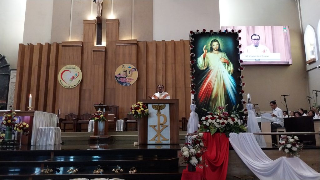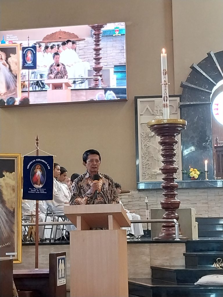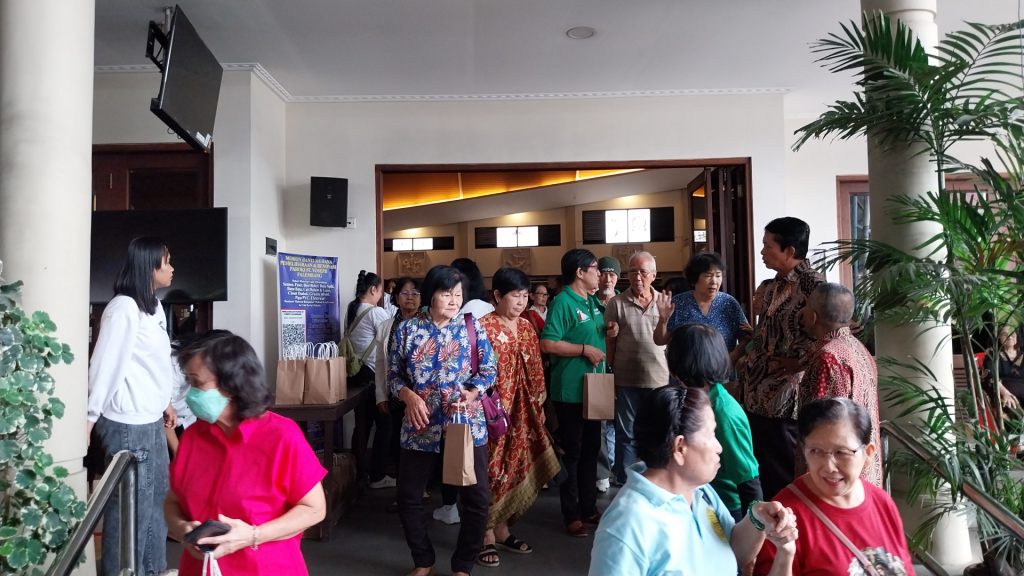 Palembang – Sebanyak 300-an Lansia OTSB (Orang Tua Sehat Bahagia) mengikuti Paskah bersama dalam Perayaan Ekaristi, Sabtu 11 April 2026 pukul 09.00 Wib yang dipimpin oleh RD. Hyginus Gono Pratowo di Gereja Santo Yoseph Palembang.