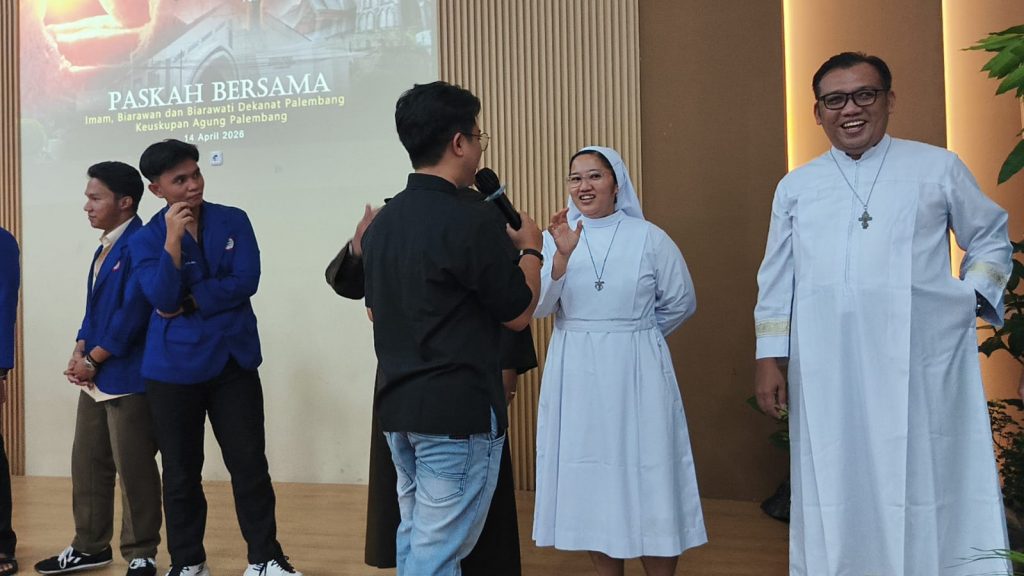 Palembang – Setiap tahun Gereja Katolik merayakan hari Doa Sedunia untuk panggilan bagi para calon Imam, Biarawan-Biarawati setiap hari Minggu Paskah keempat. Dekanat Palembang secara khusus bersama para Imam, Biarawan-Biarawati, Seminaris dan umat merayakan Perayaan Paskah bersama, Selasa 14 April 2026 pukul 17.30 Wib di Gereja Santo Yoseph Palembang yang dipimpin oleh Vikjen KAPal, RD. Yohanes Kristianto.